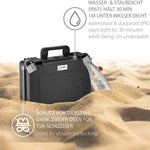 💡 The weight of the case: 4.8 kg. The external dimensions are as follows: 555 x 428 x 211mm. The case is of course IP67 certified and therefore underwater-proof for at least 30 minutes (1m depth).