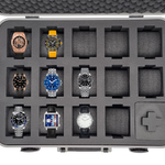 - Extrem edler Aluminium Transportkoffer vollständig hergestellt in Handarbeit in Deutschland. Die Uhren befinden sich auf flexiblen Schaumstoffpolstern, sodass auch Uhren mit geringem Bandumfang ideal liegen.