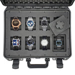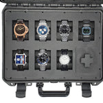 MC-CASES ®️ Étui à montres Étui de transport taille S pour jusqu'à 8 montres - Étui de voyage - Étanche - Verrouillable - Parfait pour le voyage - Extrêmement protégé - Fabriqué en Allemagne (Espace pour 8 montres)