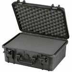 Étui étanche à l'eau et à la poussière en noir, vide / mousse cube / insert pour appareil photo / fonction d'organisation.