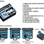 - In detail, there is space in the case for the following accessories: 1x Parrot Anafi Drone with inserted battery and mounted propellers (ready to fly), 1x remote control (ready to fly), additional 4 batteries (+1 in the copter), compartments for cables, USB cables, power cables, Replacement propeller set, 3 x SD card slots in the Parrot plastic housing and 2 x SD card slots), multi-compartment for USB charger and other accessories, as well as further multi-compartments Dimensions: 336 x 300 x 148mm
